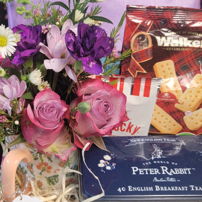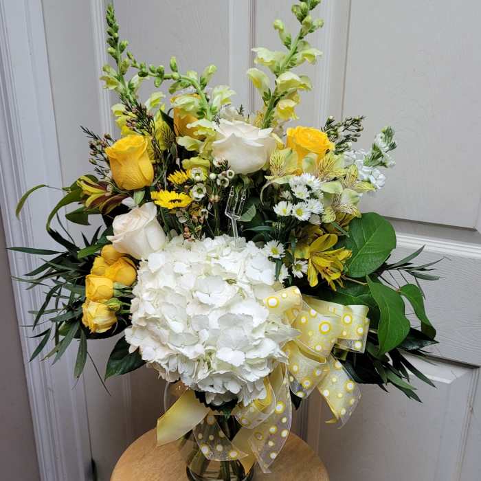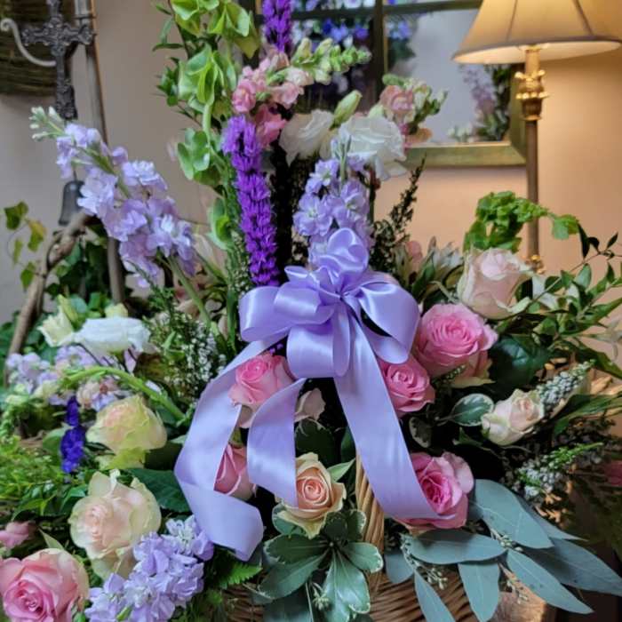 Price: $95.00Purple Array with Accent Blue Hydrangea (Gina Special)